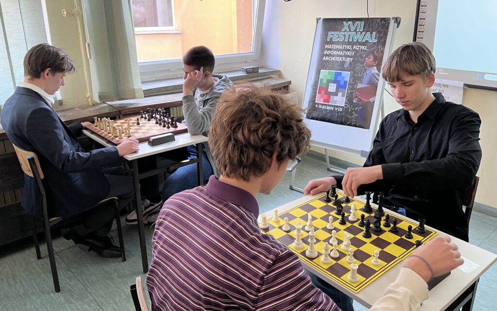 Od 9-13 marca w naszej szkole odbywać się XVII Festiwal Matematyki, Fizyki, Informatyki i Architektury. Pierwszym wydarzeniem festiwalu były rozegrane dziś Mistrzostwa Szkoły w Szachach, które zgromadziły uczniów pasjonujących się królewską grą.