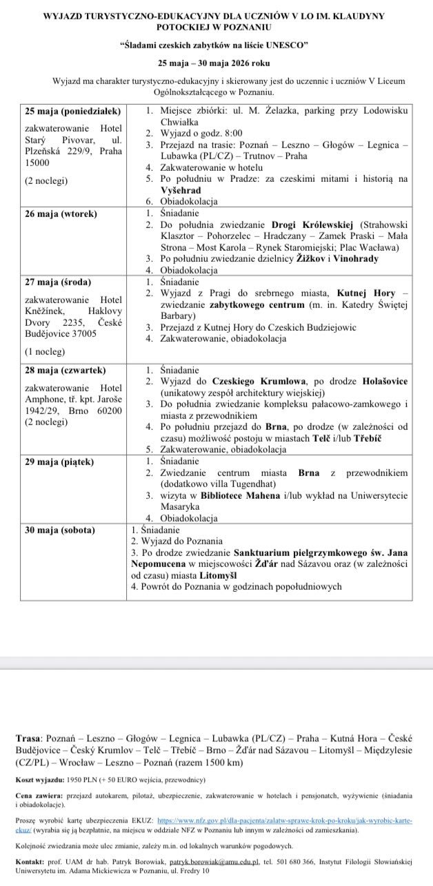 Zostało nam dosłownie kilka ostatnich wolnych miejsc na zagraniczną wycieczkę do Czech 🇨🇿, organizowaną przez pana dr. Patryka Borowiaka z Instytutu Filologii Słowiańskiej UAM.