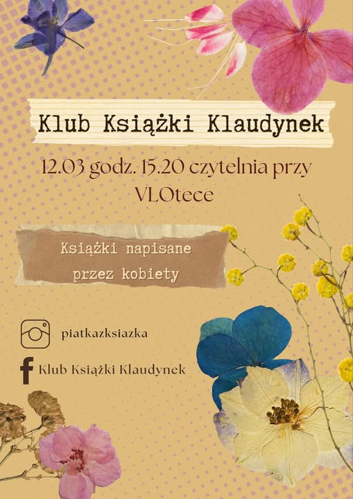Serdecznie zapraszamy na przedostatnie, tegoroczne spotkanie Klubu Książki Klaudynek, które odbędzie się 12 marca (środa) o 15:20 w czytelni koło VLOteki. Z okazji obchodzonego w sobotę Dnia Kobiet tematem tego spotkania jest literatura napisana przez kobiety