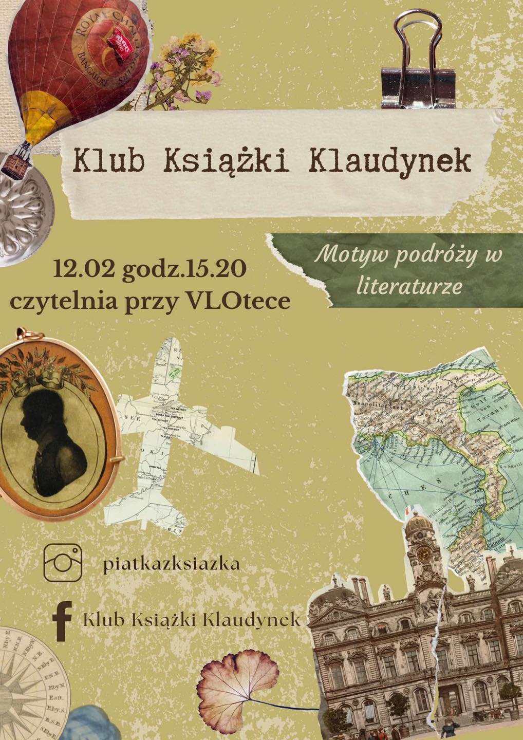 Zapraszamy wszystkich zainteresowanych na kolejne spotkanie Klubu Książki Klaudynek, które odbędzie się 12 lutego o 15:20 w czytelni przy VLOtece. Tematem spotkania jest motyw podróży